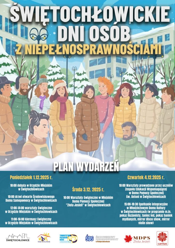 3 grudnia jest Międzynarodowym Dniem Osób z Niepełnosprawnościami. Z tej okazji świętochłowickie jednostki miejskie, zajmujące się wsparciem osób z niepełnosprawnościami przygotowały atrakcje dla wszystkich mieszkańców Miasta.