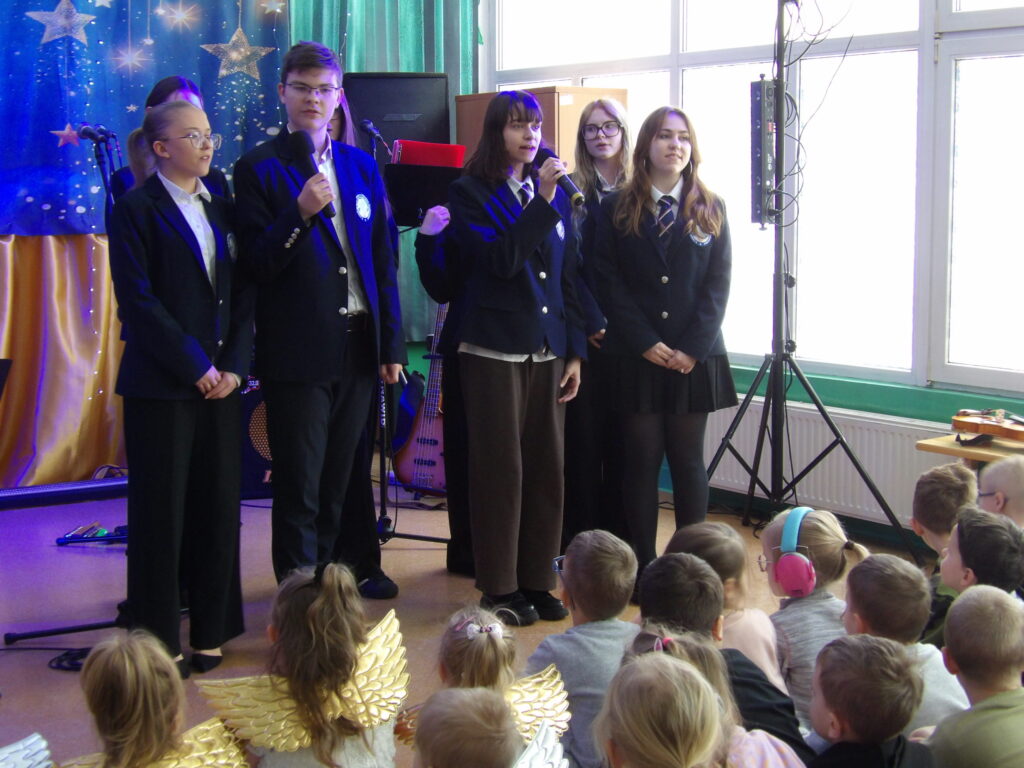 Spotkanie, które od lat stanowi ważny punkt w kalendarzu ośrodka, otworzył dyrektor Arkadiusz Staisz, witając serdecznie wszystkich obecnych. Wśród zaproszonych znaleźli się radni, przedstawiciele duchowieństwa a także dyrektorzy zaprzyjaźnionych instytucji. Na scenie najpierw pojawiły się „małe aniołki” – dzieci z ośrodka, które wprowadziły wszystkich w świąteczny nastrój swoją obecnością i szczerością. Po nich wystąpiła młodzież z Sosnowca, z II Liceum Ogólnokształcącego im. Emilii Plater, która zaprezentowała dwie piękne kolędy. Był to piękny gest wzajemności po grudniowej wizycie dzieci z bykowińskiego ośrodka na sosnowieckim kolędowaniu.
