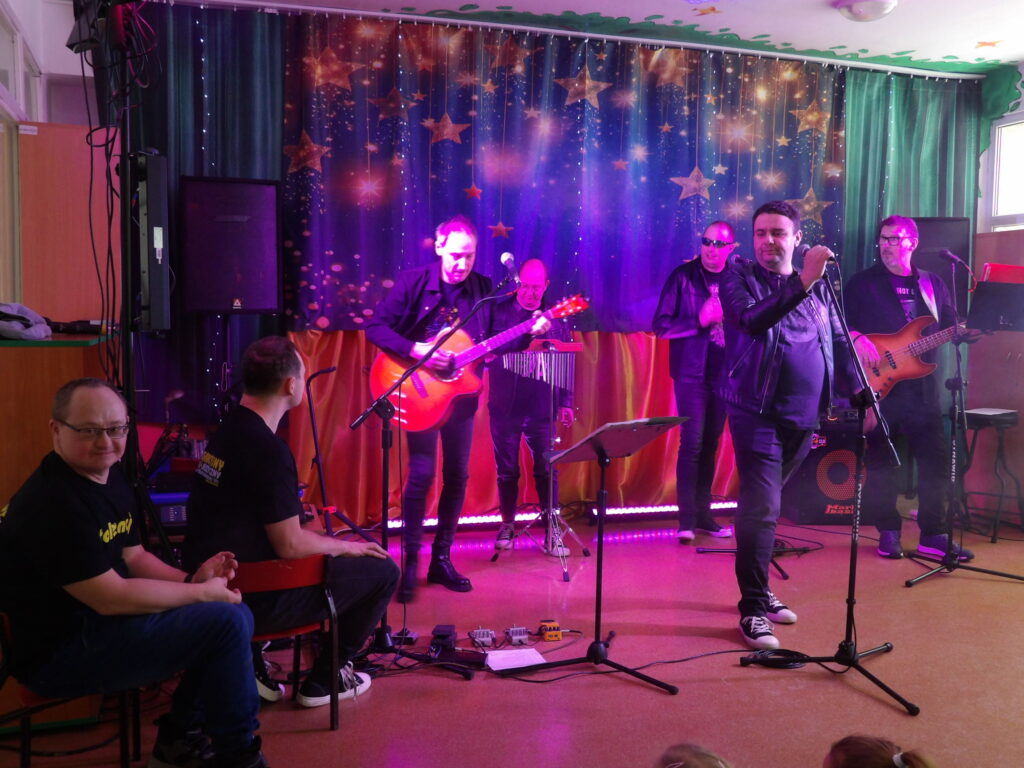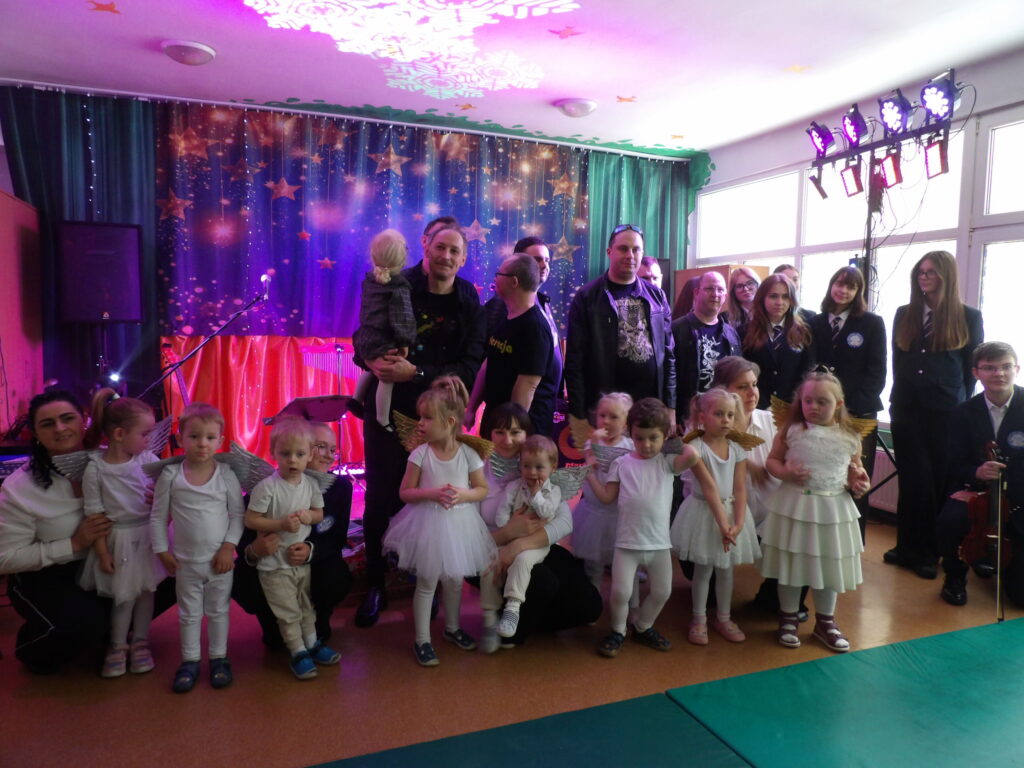 Na koniec zaśpiewał i zagrał integracyjny zespół „Tolerancja” z Warsztatów Terapii Zajęciowej w Świętochłowicach, od lat związany z tym wydarzeniem. Publiczność chętnie dołączała do śpiewu, tworząc atmosferę bliskości i jedności. Finał wydarzenia przyniósł mocny, pełen energii akcent – rockowe wykonanie kolędy „Przybieżeli do Betlejem pasterze”, w której do zespołu „Tolerancja” dołączyli sosnowieccy licealiści. Wspólne zdjęcie wykonawców i dzieci z ośrodka zwieńczyło to piękne wydarzenie, które bez wątpienia zapadło w pamięć jego uczestnikom. Dyrektor Staisz już dziś zaprasza wszystkich na przyszłoroczne kolędowanie.